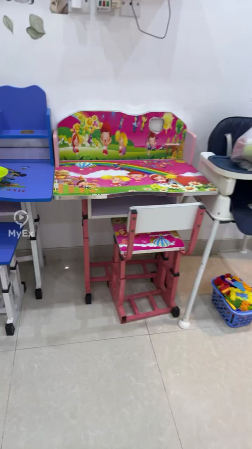 طقم مكتب وكرسي للأطفال بتصميم جذاب ورسومات كرتونية مبهجة تشجع الطفل على التعلم والجلوس لفترات مريحة. يتميز بإمكانية تعديل الارتفاع ليتناسب مع نمو الطفل، مع هيكل متين وقواعد ثابتة لسلامة أعلى. سطح المكتب واسع ومناسب للمذاكرة، الرسم والأنشطة اليومية، مع حواف آمنة للأطفال. خيار عملي وممتع لغرفة الطفل أو ركن الدراسة